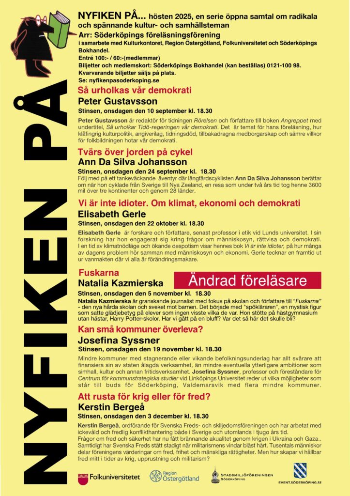 av Björn Göransson 25 augusti 202513 oktober 2025 Hösten 2025 Hemsidan uppdaterad/ändrad föreläsare Bli den första att kommentera Lämna ett svar Avbryt svarDin e-postadress kommer inte publiceras. Obligatoriska fält är märkta *Kommentar * Namn * E-postadress * Webbplats Spara mitt namn, min e-postadress och webbplats i denna webbläsare till nästa gång jag skriver en kommentar. Δ Denna webbplats använder Akismet för att minska skräppost. Lär dig om hur din kommentarsdata bearbetas.